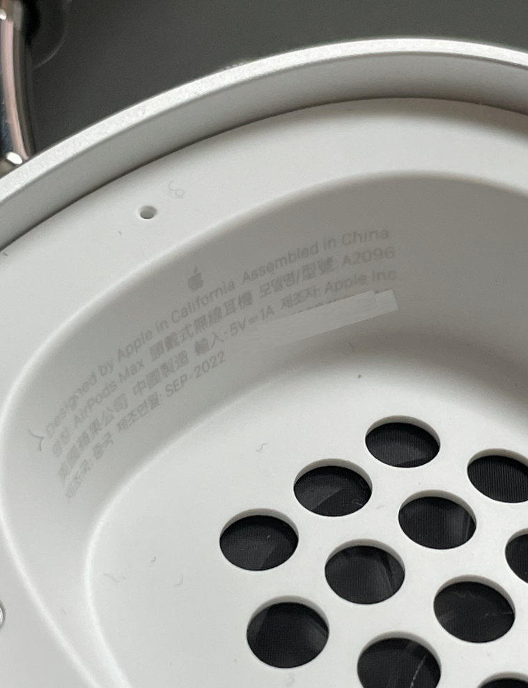 또는 에어팟 밑면을 확인한다. 왼쪽과 오른쪽 에어팟 모두에 모델번호가 인쇄되어 있는 것을 확인할 수 있다. 에어팟 맥스의 경우 모델 번호를 보려면 왼쪽 이어 쿠션을 제거해야 확인이 가능하다.