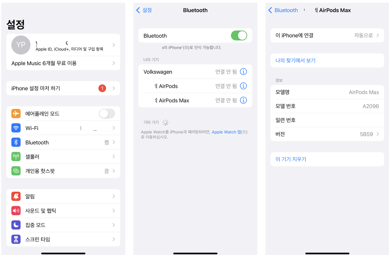 아이폰 설정에서도 확인이 가능하다. 먼저 아이폰과 에어팟을 페어링 했는지 확인해야 한다. 다음의 단계를 따른다.