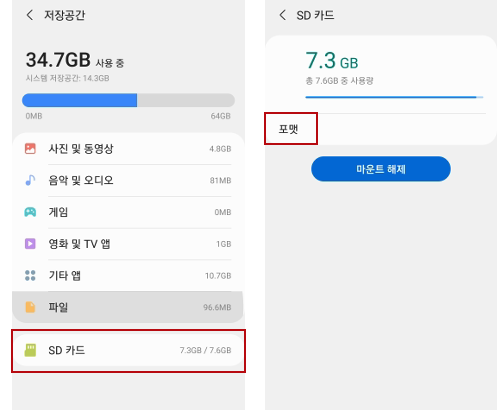 안드로이드 기기에서 SD카드를 포맷하는 방법