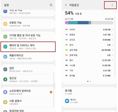 1. 설정 > 배터리 및 디바이스 케어를 선택한다.
