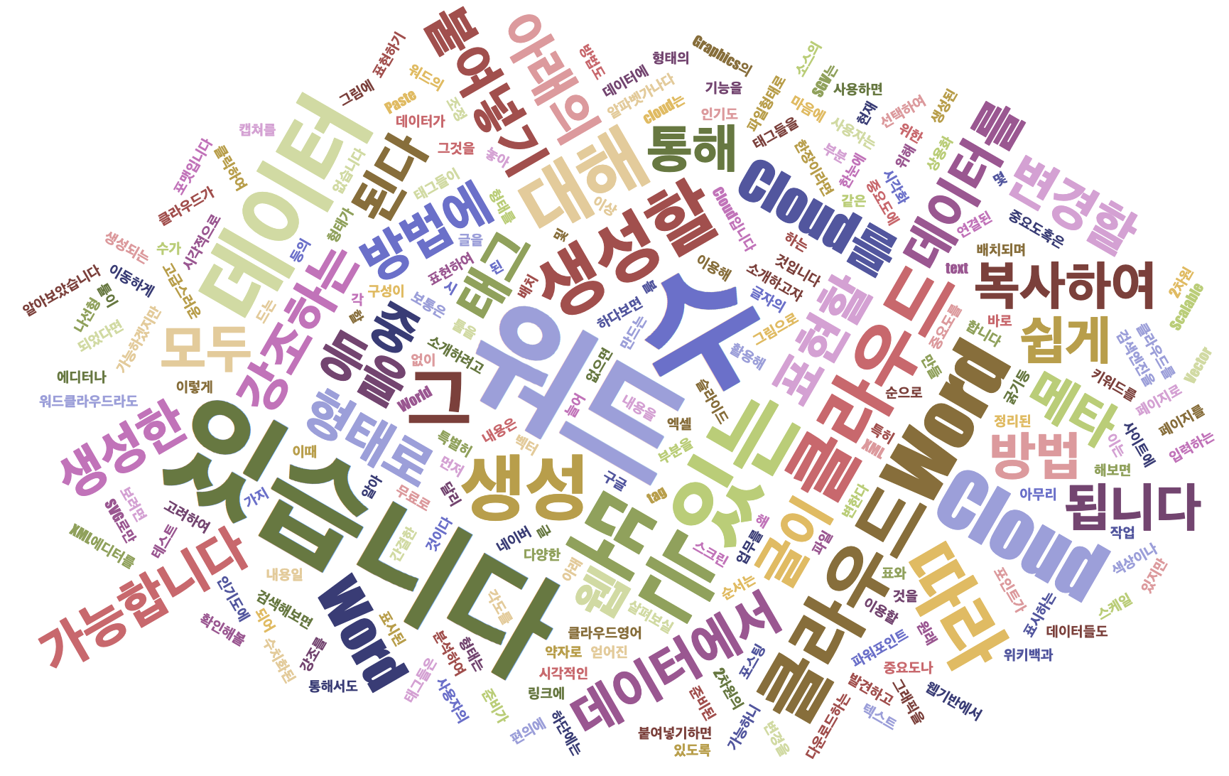 이상 워드 클라우드(Word Cloud) 생성 방법에 대해 알아보았습니다.