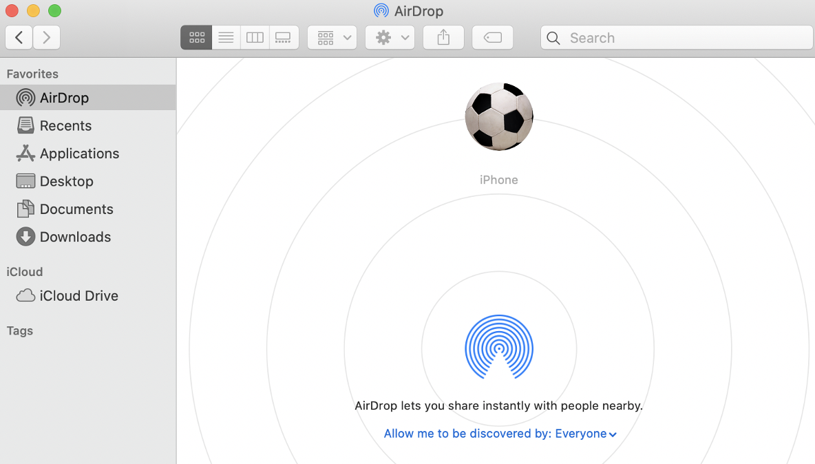 또한 에어드롭 파일을 원하는 모든 사람이 맥북에서 볼 수 있는지 확인해야 합니다. 이를 확인하려면 Finder윈도우를 열고 사이드바에서 에어드롭을 선택합니다.