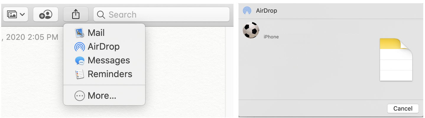 현재 앱에 공유 버튼이 없거나 공유 옵션으로 에어드롭을 사용이 안된다면 Finder를 사용하여 에어드롭을 통해 파일을 전송할 수 있습니다. Finder 윈도우를 열고 사이드바에서 에어드롭을 클릭하거나 메뉴 막대에서 이동 > 에어드롭을 선택합니다. 에어드롭을 통해 파일을 전송할 기기가 표시됩니다. 다른 탐색기 윈도우에서는 드래그 앤 드롭으로 파일을 놓으면 됩니다.