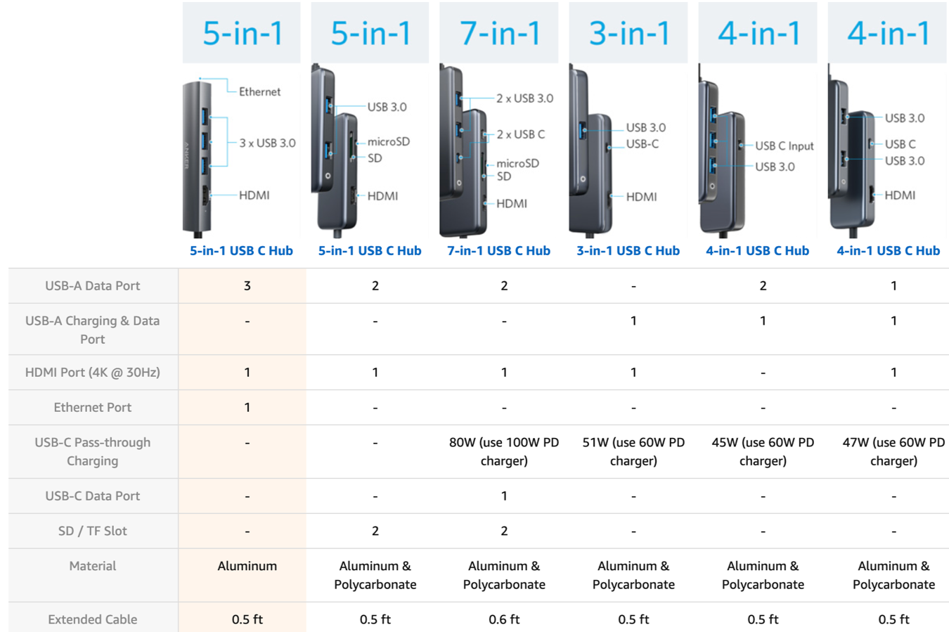 추천하는 제품 이외도 다양한 조합으로 구성한 제품들도 있습니다. 추천 제품에는 Pass-through(패스스루) 기능이 없이 3개의 USB 포트만을 지원하고 있습니다.