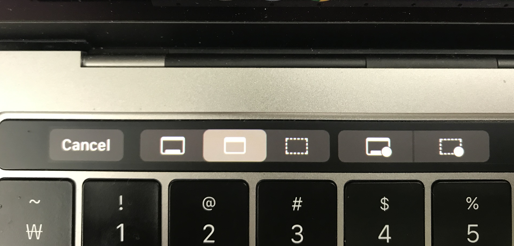 터치 바를 내장한 맥북을 사용한다면 다음과 같이 아이콘이 나타나고 이 부분을 터치하면 동일한 기능을 사용할 수 있다.