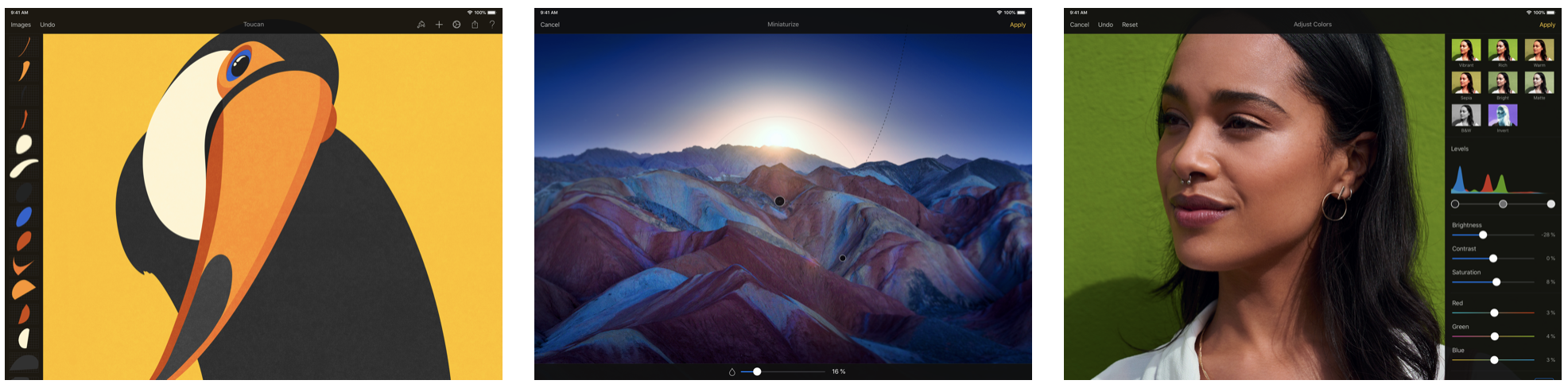 아이패드의 성능이 개선됨에 따라 데스크톱 급 앱이 Adobe Photoshop을 포함한 태블릿으로 이동하고 있습니다. Adobe는 iPad의 터치 스크린을 활용하고 애플 펜슬에 대한 지원을 포함하도록 앱을 설계했습니다.