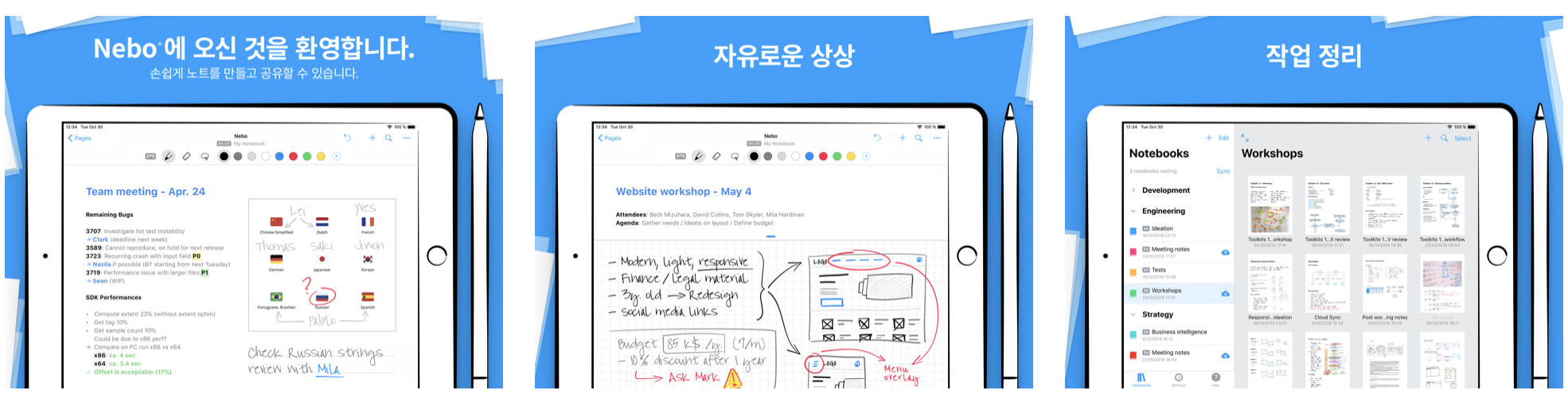 Nebo는 애플 펜슬로 더욱 개선된 기능을 갖춘 메모 작성 앱입니다. Nebo앱으로 텍스트를 편집하고 서식을 지정하고 내용과 공간을 추가하거나 제거하고 다른 스타일을 장식하고 적용하는 것과 같은 작업을 수행할 수 있습니다.