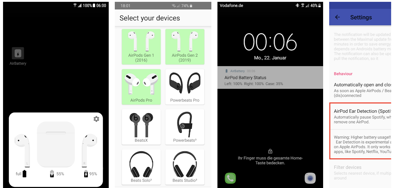 안드로이드 사용자의 경우 배터리 잔량 확인을 위한 여러 타사 앱을 사용할 수 있지만 가장 인기 있는 옵션은 AirBattery입니다. 이 무료 앱은 앱을 열 때 AirPods 배터리 잔량을 보여줍니다. 또는 Pro 버전으로 업그레이드하여 AirPods 충전 케이스를 열 때마다 배터리 알림을 받을 수 있습니다.