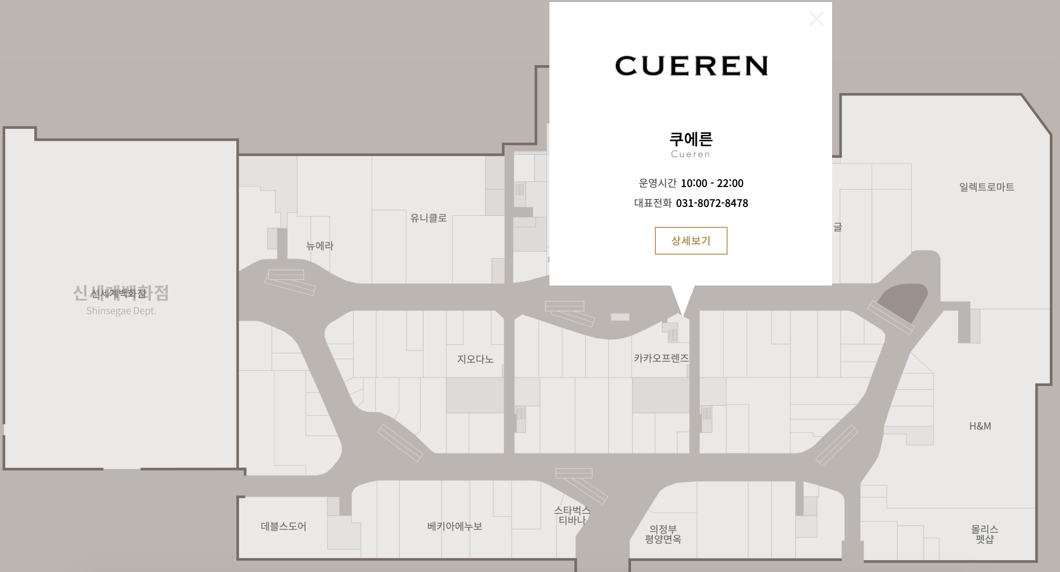 하남 스타필드 내에 쿠에른 매장은 1층의 아래에 위치하고 있다. 중간쯤에 위치하고 있어 매장도 잘 보입니다.