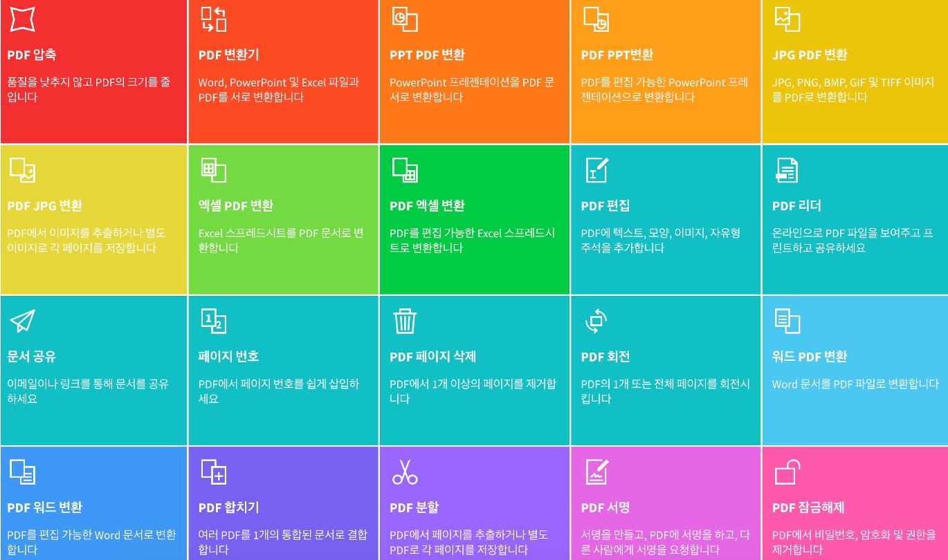 PDF 파일과 페이지를 병합하고, PDF 파일을 여러 개의 새 파일로 분할하고, 서명을 추가하고, 페이지를 삭제하고, 문서에 암호를 추가할 수도 있습니다. 워터 마크 및 PDF 압축도 지원됩니다.