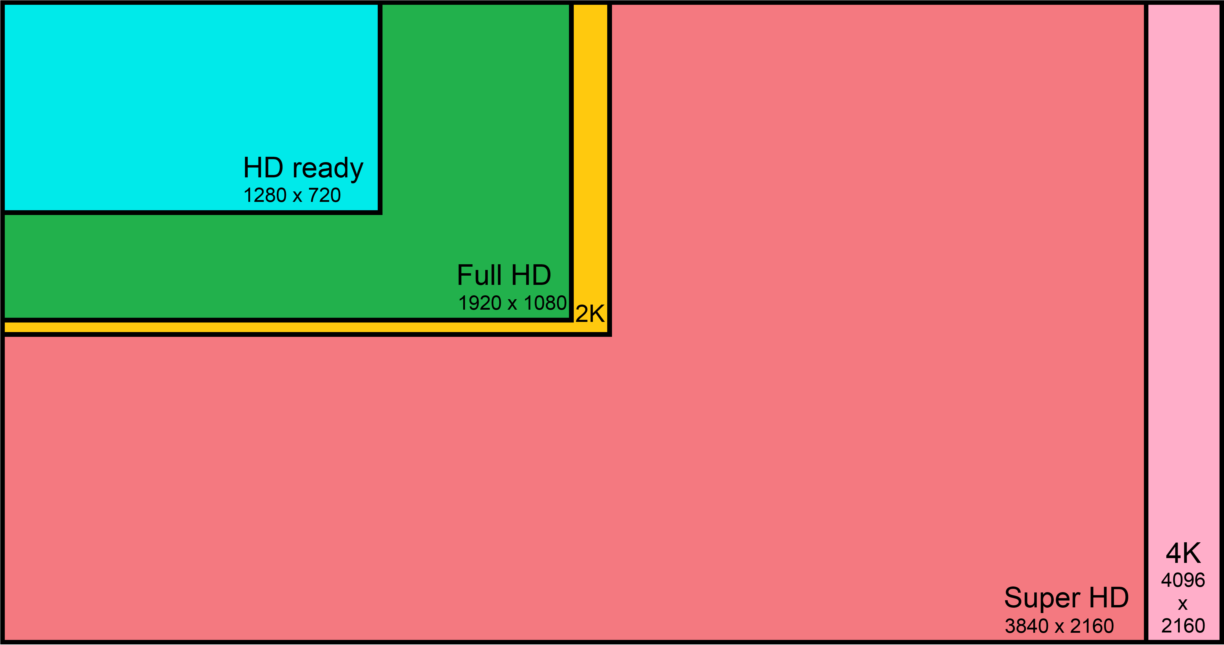 UHD-1은 DCI 표준에 가장 가까운 TV 디스플레이 표준이며 3840x2160의 해상도를 나타냅니다. 이 해상도는 Full HD 픽셀 수의 4 배입니다. DCI 4K의 더 넓은 종횡비는 대부분의 TV 콘텐츠에 적합하지 않기 때문에 대부분의 최신 TV 디스플레이는 UHD-1입니다. UHD-1은 4K UHD 또는 4K, 2160p라고 합니다.