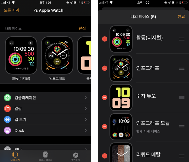 2) 애플 워치 앱을 통한 애플 워치 페이스 추가