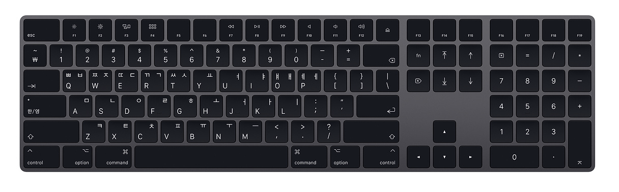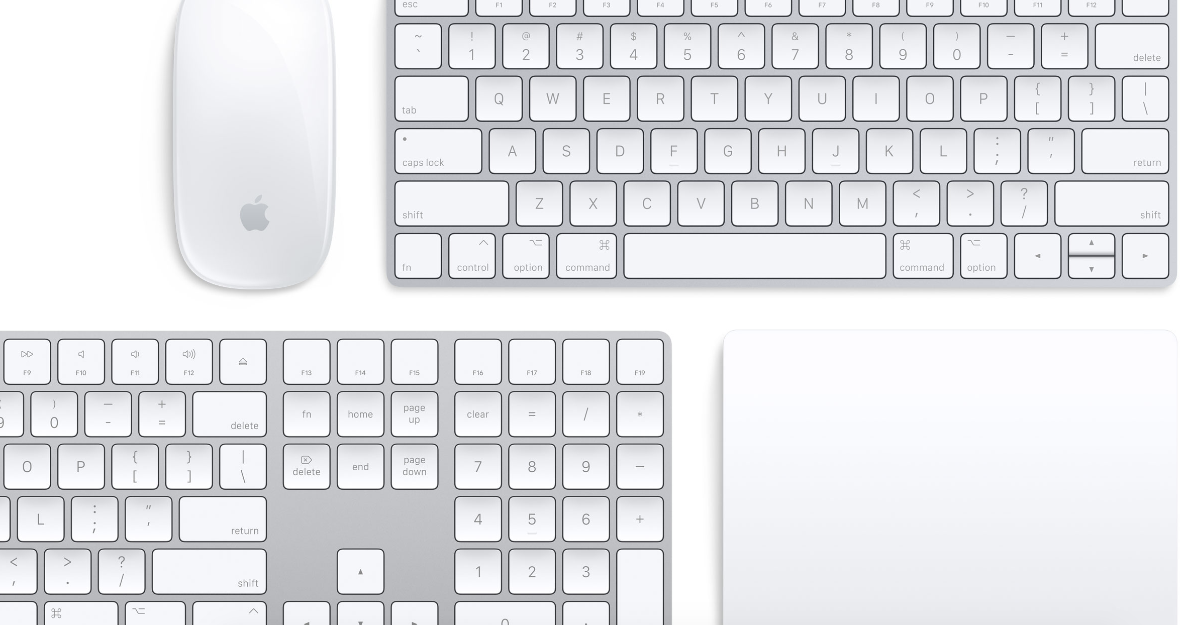 표준 매직 키보드는 QWERTY 레이아웃을 사용하지만 숫자 키패드는 없다. 다행히 키보드와 통합된 숫자패드를 선호하는 사용자를 위해 애플은 숫자 키패드가 포함된 매직 키보드도 출시했다.