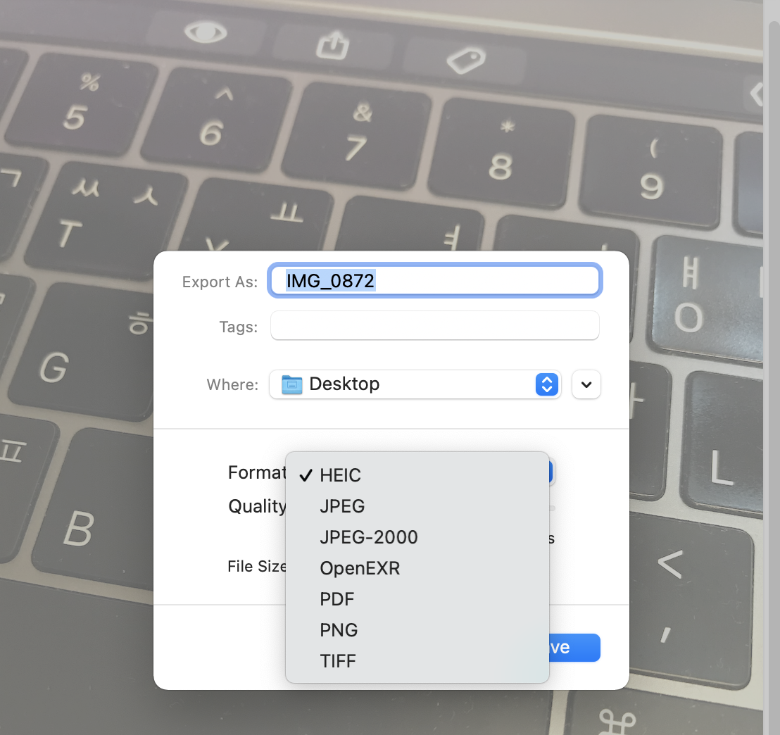 맥에서 HEIC이미지를 JPG 등의 이미지로 변환하는 방법에 대해 알아보겠다. HEIC는 저장 공간 절약을 위해 효율적인 형태라고 하지만 아직까지는 비교적 새로운 형식으로 인식되고 있고 이미지 형식을 지원하지 않는 장치와 사이트가 많이 있는 것 같다.